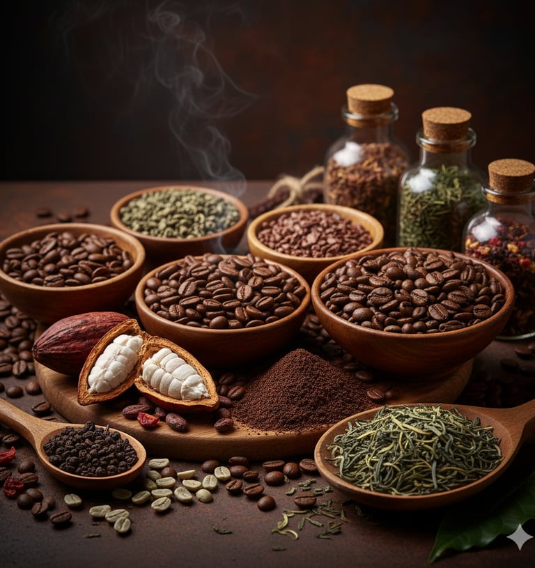 High-quality coffee, cacao, and tea sourced from selected origins with rich flavor and aroma.